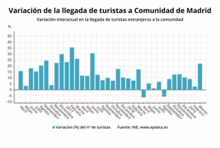 Así, si se observan los datos de marzo de este año, Madrid ha registrado un total de 682.976 turistas, lo que representa un variación anual del 21,9 por ciento si se compara con el mes de marzo del año anterior.