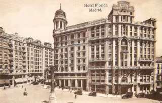 Situado en el corazón de la ciudad, el Hotel Florida fue construido entre 1922 y 1924 por el arquitecto Antonio Palacios, autor del Palacio de Cibeles y del Círculo de Bellas Artes, entre otros destacados edificios de la ciudad. En los años treintam este hotel de lujo adquirió una gran relevancia cultural e intelectual, que trascendió el plano internacional, alojando a grandes literatos y a destacados corresponsales y escritores extranjeros durante la Guerra Civil.