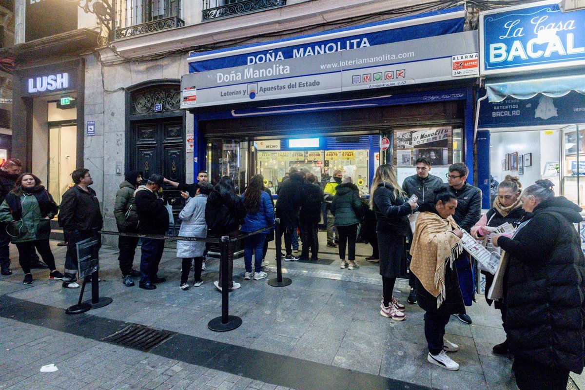 Archivo - Varias personas hacen cola en la administración de Lotería de Doña Manolita, a 20 de diciembre de 2024, en Madrid (España). - Ricardo Rubio - Europa Press - Archivo