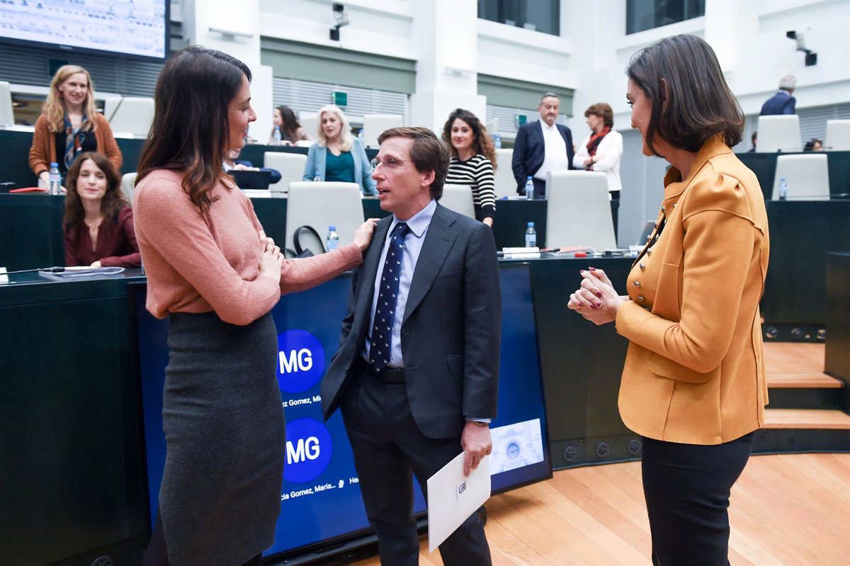 Archivo - La jefa de la oposición del Ayuntamiento de Madrid y portavoz del grupo municipal de Más Madrid, Rita Maestre, el alcalde de Madrid, José Luis Martínez Almeida, y la portavoz del grupo municipal Socialista en el ayuntamiento de Madrid, Reyes Mar - Gustavo Valiente - Europa Press - Archivo