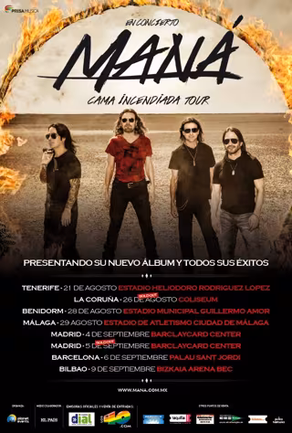 Maná actuará los días 4 y 5 de septiembre en el Barclaycard Center de Madrid dentro de la gira que inicia mañana en el Estadio Heliodoro Rodríguez López de Santa Cruz de Tenerife.