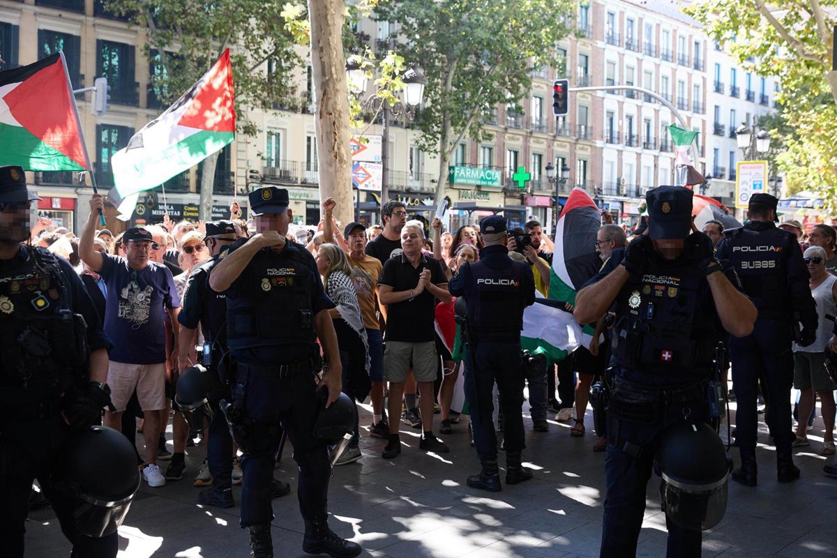 MADRID 14 Sep. (EUROPA PRESS) - Manifestantes propalestinos ya se concentran en varios puntos de Madrid horas antes de la llegada del pelotón de la Vuelta Ciclista a España a la capital, donde remata este domingo una edición marcada por las protestas que arrancasen en la etapa de Bilbao y se hayan replicado desde entonces en cada jornada. Al grito de 'Israel Estado Genocida', 'Asesino Netanyahu' o 'No es una guerra, es un genocidio' los concentrados han acudido con banderas palestinas a puntos de la ciudad como Callao, Atocha, la Puerta del Sol o la Ermita de San Antonio de la Florida --en Argüelles--. En la que está teniendo lugar en la Puerta del Sol se encuentran la portavoz de Más Madrid en la Asamblea, Manuela Bergerot, y el portavoz en funciones en el Ayuntamiento, Eduardo Rubiño. En una de las fachadas de la icónica plaza la formación ha desplegado una lona con el texto ¡Sí, es un genocidio. Palestina libre. Madrid con el pueblo palestino'. El colofón a esta 90 edición de la Vuelta Ciclista será la coronación del 'maillot' rojo en Cibeles, frente a la sede del Ayuntamiento de la capital, prevista sobre las 20.30 horas. Previamente, los corredores realizarán un circuito urbano con nueve pasos por meta, con un último tramo que tendrá como protagonista el Paisaje de la Luz, declarado Patrimonio Mundial de la Unesco. La ronda española recorrerá así las principales calles del Madrid histórico, con paso por la Puerta del Sol, calle Mayor, plaza de Oriente, Paseo del Prado, Gran Vía o Callao. Desde el Ayuntamiento de Madrid se prevé una asistencia superior a las 50.000 personas. Se ha preparado un plan de seguridad especial integrado por 1.100 policías nacionales y otros 400 guardias civiles, a los que se sumarán 800 efectivos de la Policía Municipal y un centenar de agentes de Movilidad y un dispositivo de Samur-Protección Civil. Todo ello junto a la activación de policías locales en las distintas localidades de paso y el dispositivo habitual de seguridad propio de la Vuelta.