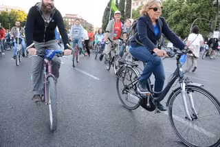 Manuela Carmena, habitual ciclista, ha realizado este recorrido que ha congregado a cientos de ciclistas, dispuestos a pedalear para que el cambio sea una realidad en Madrid a partir del domingo.