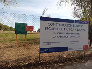 La maquinaria ha empezado a trabajar en el solar del barrio de Lucero, entre las calles Carlos Fuentes con Hurtumpascual, que en 19 meses dará paso a la primera escuela municipal de música y danza de Latina, distrito con 250.000 habitantes.