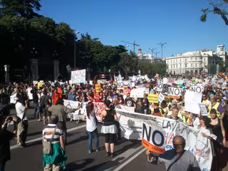 Entre las pancartas pueden leerse críticas a la reforma laboral, a la nueva ley de Educación, a la externalizacion de hospitales madrileños o a los desahucios.
