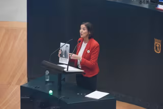 Maroto, vestida de rojo socialista con una chapa de 'Perra Sanxe' y otra del 'No a la tala', ha protagonizado un debate tenso con la bancada 'popular', con continuas interrupciones y que ha llevado a su compañero Pedro Barrero a requerir en varias ocasiones al presidente del Pleno que pusiera orden entre el PP.