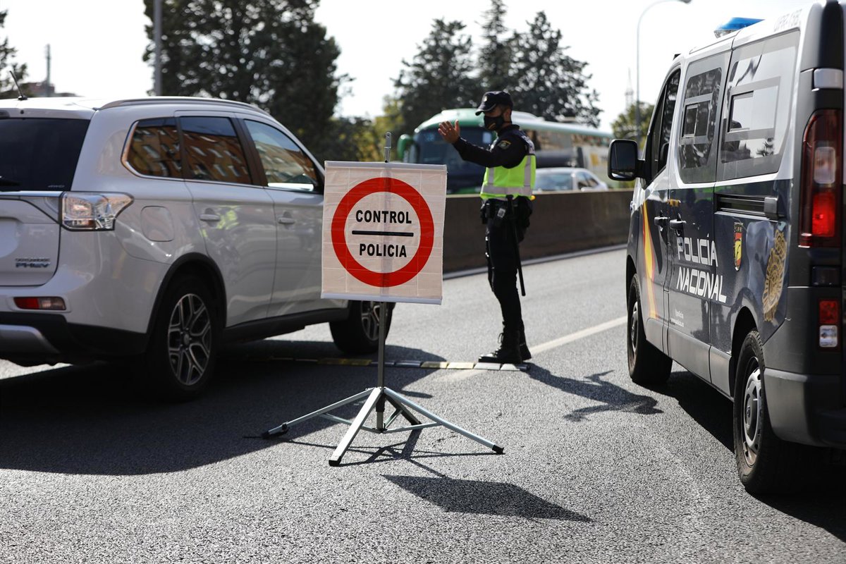Un agente de Policía Nacional da el alto a un vehículo en un control en la carretera A-5, en Madrid (España), a 9 de octubre de 2020. El Ministerio del Interior ha comenzado a desplegar un amplio operativo de controles policiales en Madrid y el resto de - Jesús Hellín - Europa Press