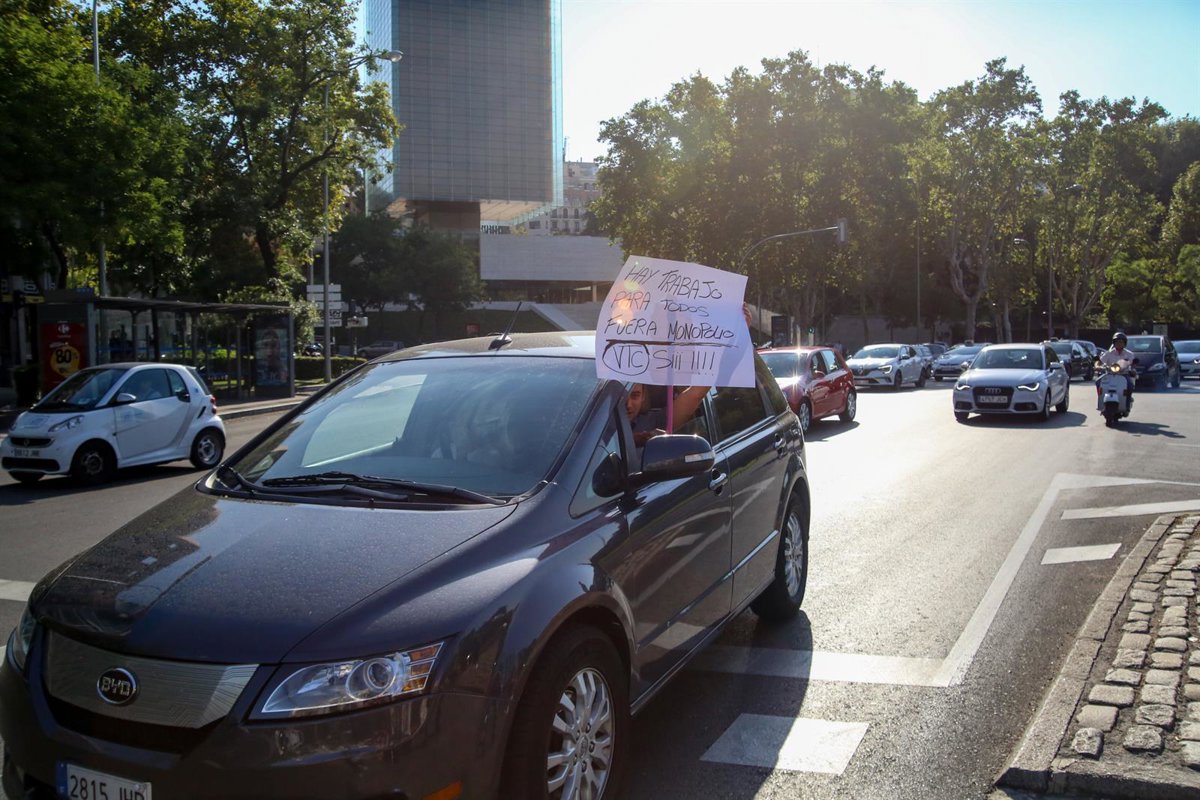 Asimismo, ha afirmado que con esta concentración protestan contra el Gobierno "que quiere mandar a 15.000 trabajadores a la ruina con el único objetivo de apoyar al monopolio del taxi". "Un Gobierno socialista apoyado por Podemos, que se supone que son gobiernos de izquierdas, ceden 15.000 familias para favorecer al monopolio del taxi", ha señalado.