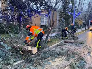 Concretamente, el centro Madrid 112 ha gestionado entre las 12 y las 19 horas un total de 150 incidencias relacionadas con el viento, muy repartidas por toda la región. En este mismo periodo los Bomberos regionales realizan 63 salidas por este motivo, fundamentalmente por caídas de ramas o árboles y por saneamientos de cornisas, fachadas o tejados, como la retirada de un pino a punto de caer en la avenida de los Reyes Católicos de Majadahonda.