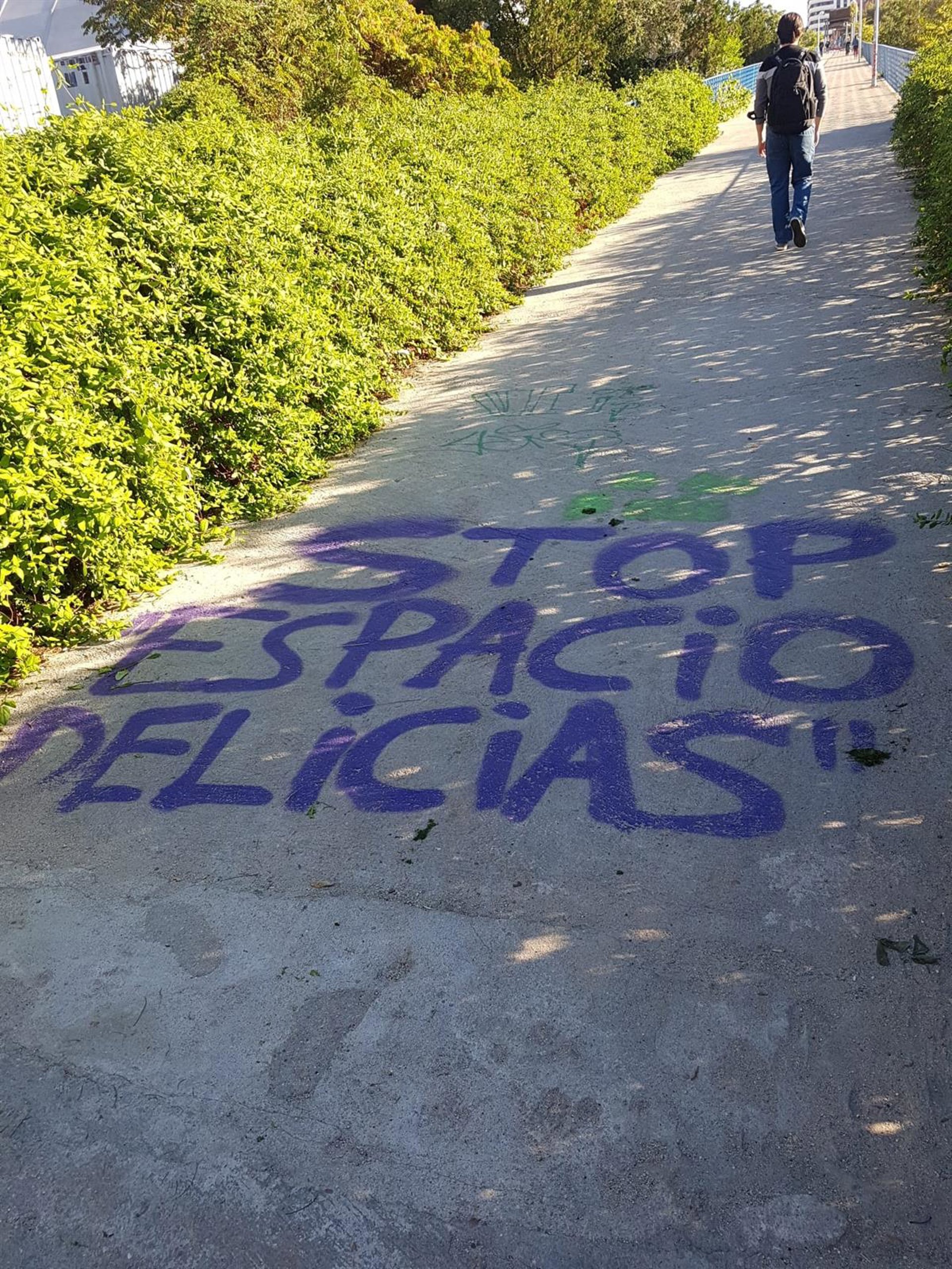 Pintada en el suelo contra el Espacio Delicias - EUROPA PRESS
