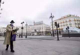 Un hombre camina protegido con mascarilla por la Puerta del Sol de la capital - Marta Fernández Jara - Europa Press