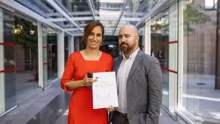 La portavoz de Más Madrid en la Asamblea, Mónica García, y el diputado de Más Madrid Alejandro Sánchez, registrando una iniciativa en la Asamblea de Madrid - MÁS MADRID