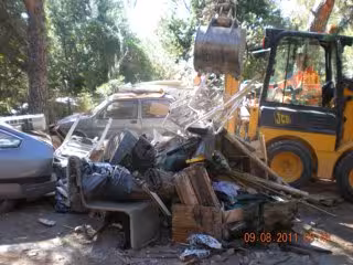 En total se cargaron un total de ocho contenedores, de 30 metros cúbicos cada uno, lo que supone un volumen 240 metros cúbicos. A ello hay que sumar la retirada, por parte de la grúa municipal, de seis coches.