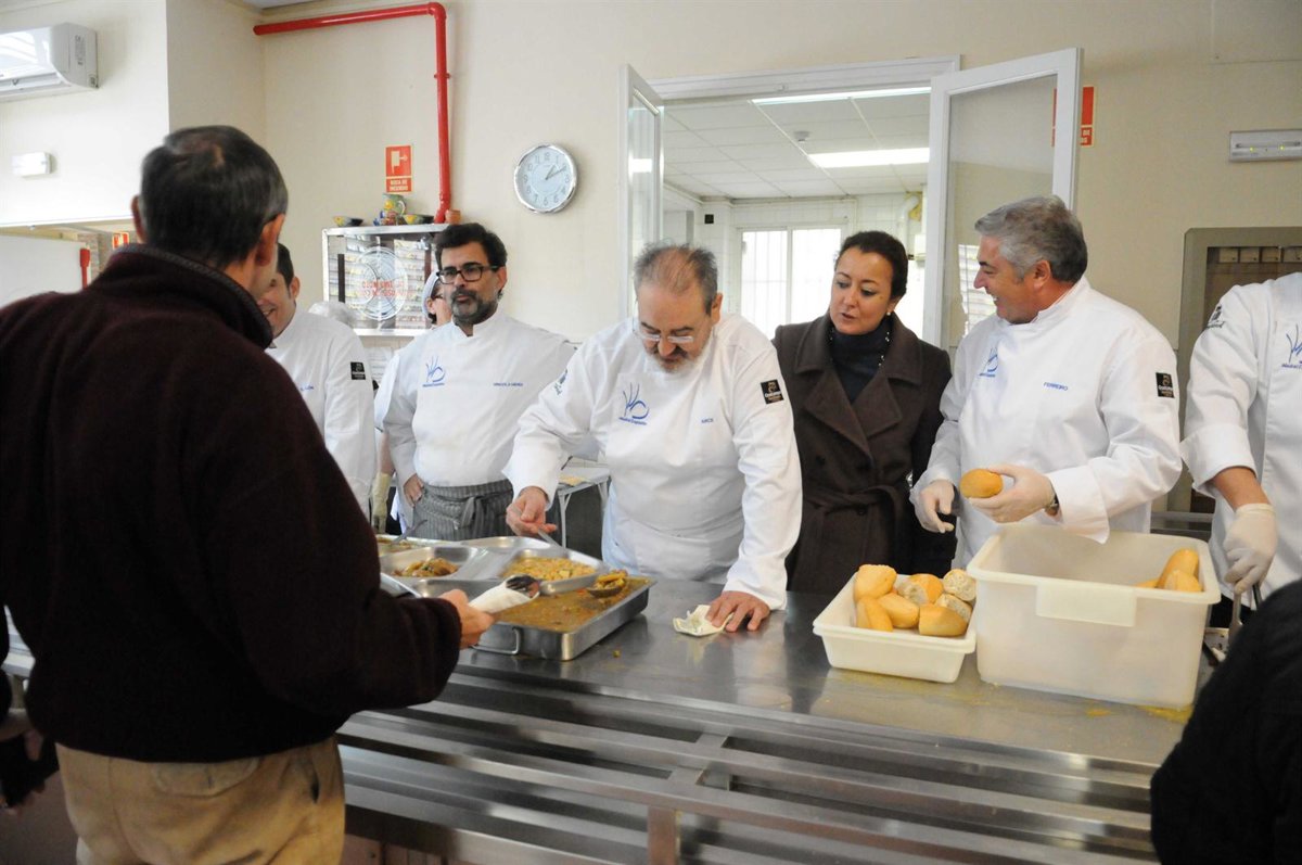 Unas 500 personas que acuden diariamente al comedor social San Vicente de Paúl-Santa Luisa de Marillac, en Madrid, han disfrutado este viernes de un "menú de gala" elaborado por algunos de los mejores cocineros de la capital con motivo de la celebración de la patrona de Madrid, la Virgen de la Almudena.