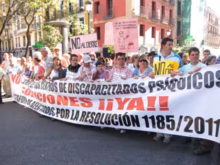 Medio millar de personas se han manifestado en la tarde de este jueves entre la plaza de la Villa y la Puerta del Sol para protestar por el cierre de los centros de discapacitados Magerit, Fray Bernardino y Centro de Atención a Discapacitados Psíquicos de Arganda del Rey y han pedido que se busque un centro alternativo en el que reubicar juntos a los usuarios de cada centro.