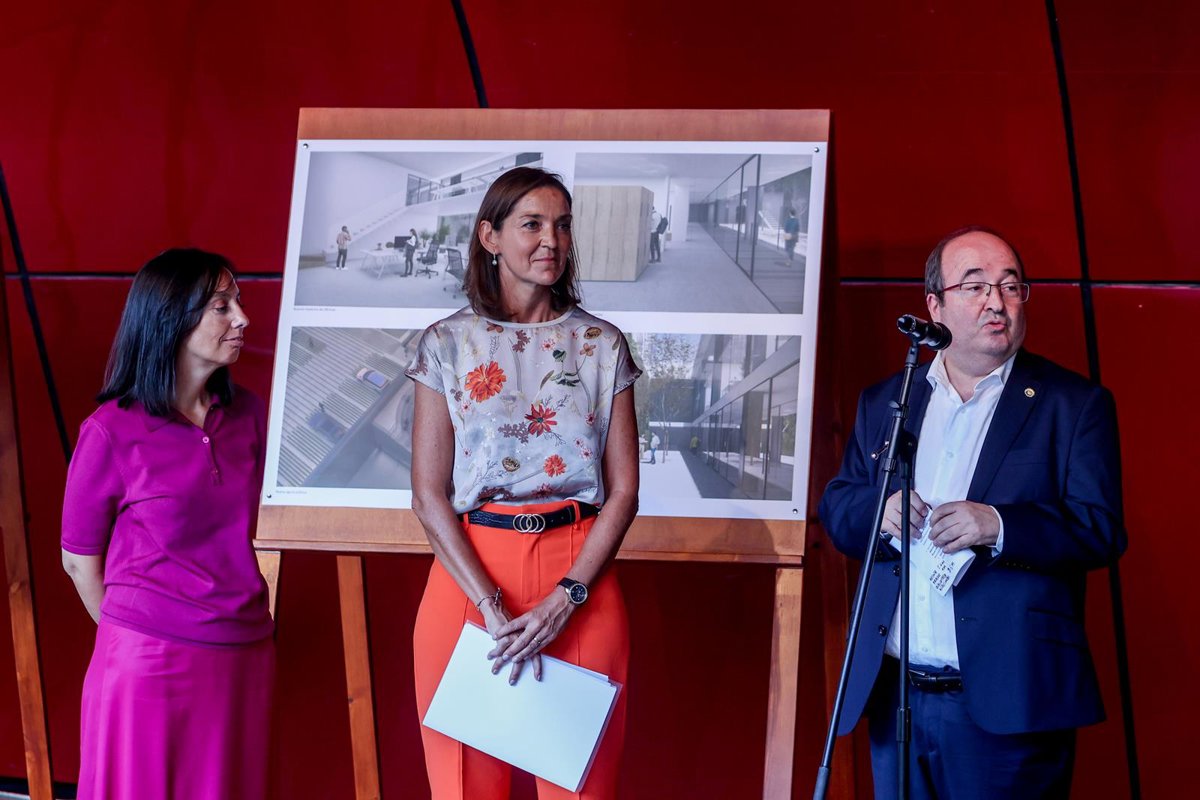Archivo - (I-D) La delegada de Gobierno en la Comunidad de Madrid, Mercedes González; la ministra de Industria y Comercio, Reyes Maroto; y el ministro de Cultura y Deporte, Miquel Iceta, presentan proyectos conjuntos en el Paisaje de la Luz, en el Museo - Ricardo Rubio - Europa Press - Archivo