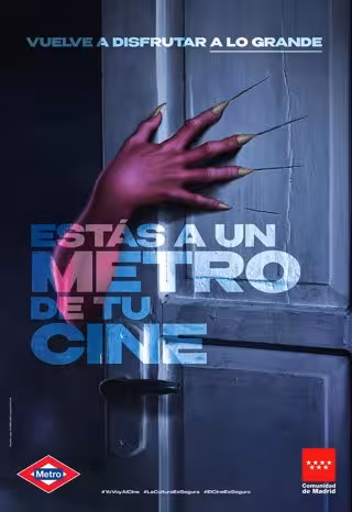 La Comunidad de Madrid pone en marcha la campaña A un Metro de tu cine, para promover la asistencia a las salas de cine, unos espacios que cumplen con el lema 'LaCulturaEsSegura'.