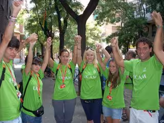 Mientras, un megafono anima a los miles de peregrinos al grito de que Madrid es la capital de la JMJ, donde todos los paises estan representados. "Hoy los jovenes venimos a escuchar a Cristo en boca de Benedicto XVI", corea el altavoz, entre los intervalos de la emision de un video sobre el Papa y la reemisión del mensaje de bienvenida del Pontífice en el aeropueto de Barajas. Los jóvenes también han podido bailar al ritmo de la popular canción La Macarena.
