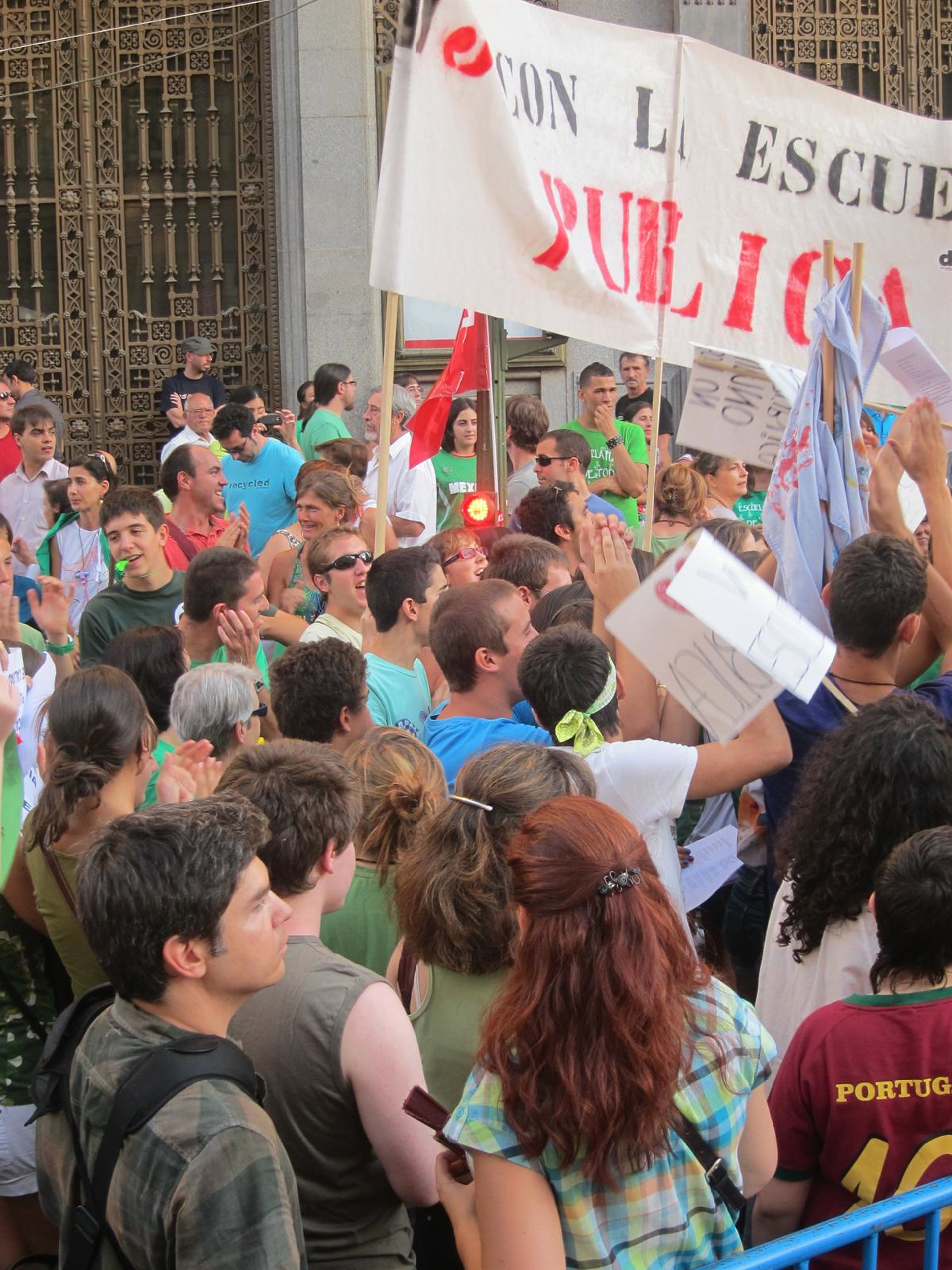 Miles de personas, más de 90.000 según los convocantes, se han manifestado este martes entre Neptuno y la estación de Metro Sevilla, en la calle Alcalá, en defensa de la enseñanza pública con pitos, pancartas, y gritos de 'Esperanza dimisión' después de la cuarta jornada de huelga en los IES de la Comunidad de Madrid contra los recortes en Educación.