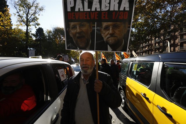 Entre los lemas coreados se ha podido escuchar 'El Taxi unido jamás será vencido', 'Rajoy, escucha, el Taxi está en lucha' o 'Si esto no se arregla, guerra, guerra, guerra'.
