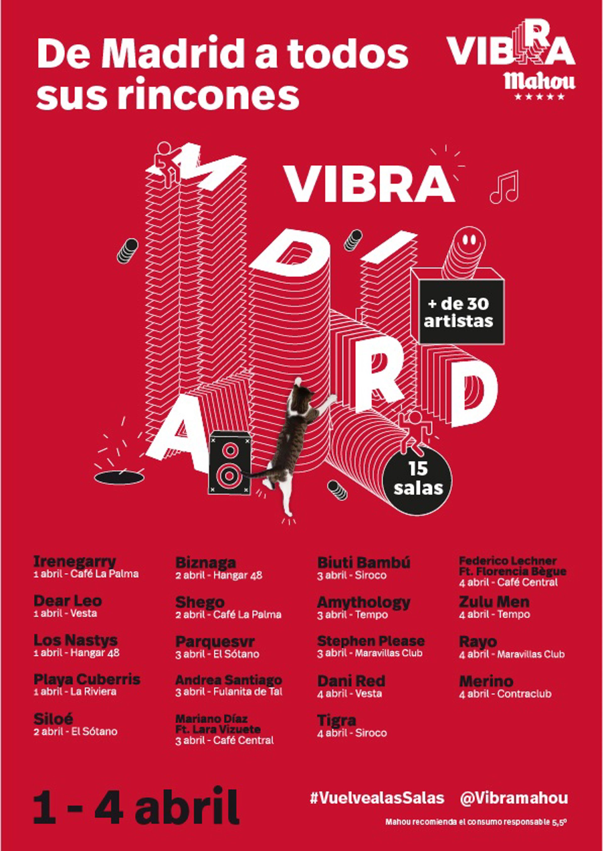 Vibra Madrid, el ciclo creado por Vibra Mahou, la plataforma de música de Mahou Cinco Estrellas, incorporará muchos más nombres a la programación durante los próximos días, configurando un gran 'line-up' de más de 30 conciertos.