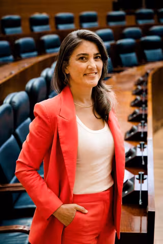 La portavoz de Más Madrid en la Asamblea, Manuela Bergerot, posa para Europa Press en el hemiciclo de la Cámara de Vallecas. - CARLOS LUJAN - EUROPA PRESS