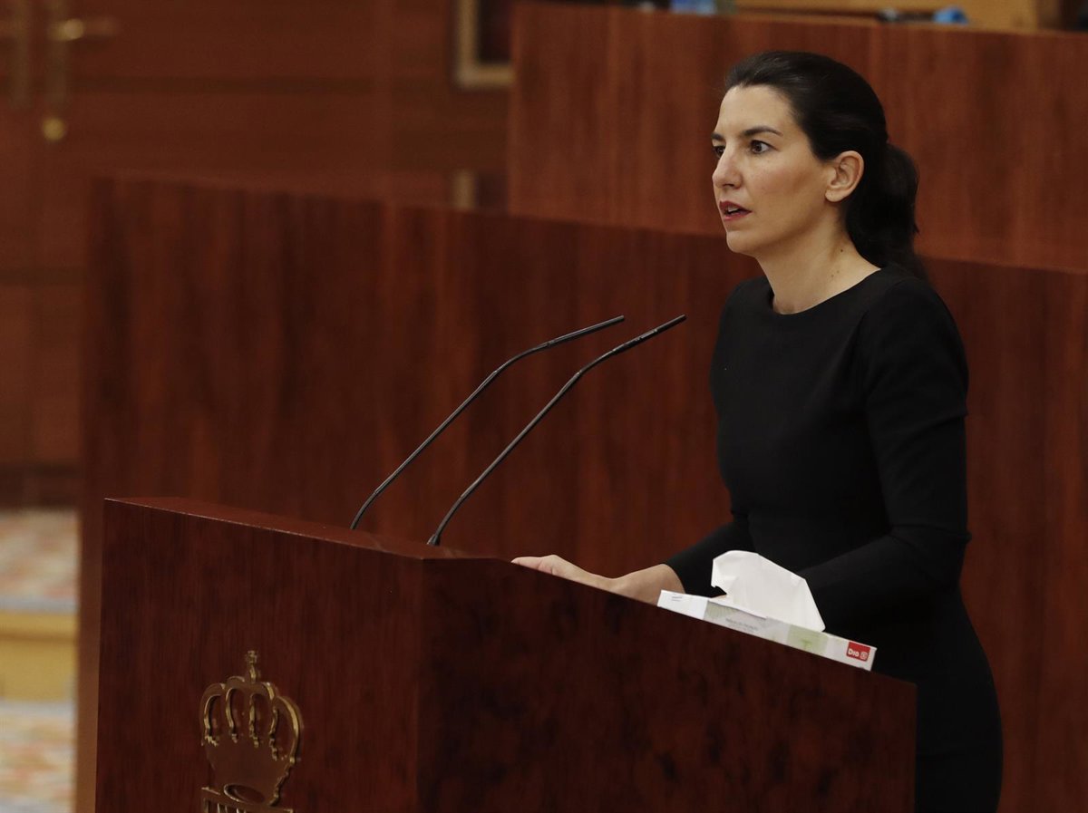 La portavoz de Vox en la Asamblea de Madrid, Rocío Monasterio, ha acusado este martes a Ciudadanos de querer pactar con el PSOE cuando ha hecho "una malísima gestión de la crisis sanitaria del coronavirus" y al vicepresidente regional, Ignacio Aguado, de "echarse a sus brazos" y ser el "infiltrado" del presidente del Gobierno, Pedro Sánchez.