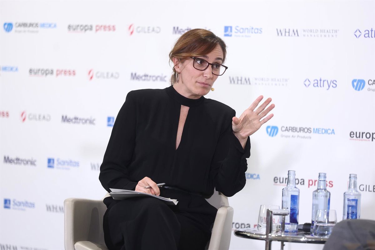 La ministra de Sanidad, Mónica García, interviene durante un Desayuno Socio-Sanitario organizado por Europa Press, en el Hotel Hyatt Regency Hesperia Madrid, a 22 de septiembre de 2025, en Madrid (España). - Eduardo Parra - Europa Press