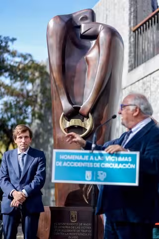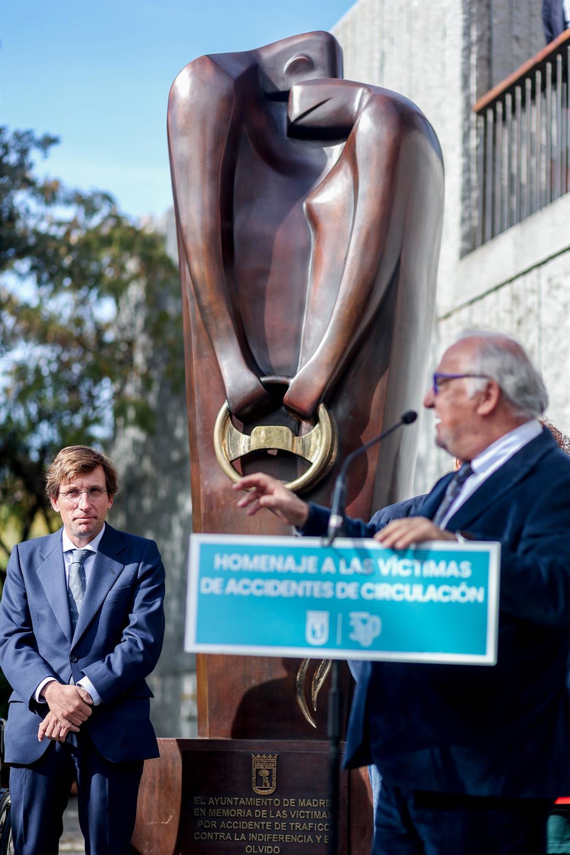 El Ayuntamiento de Madrid ha rendido homenaje este viernes a las víctimas de accidentes de tráfico con la instalación de una escultura de la artista Rosa Serra Puigvert en el parque de Madrid Río. El alcalde, José Luis Martínez-Almeida, ha descubierto la escultura, situada bajo el puente de Arganzuela de Dominique Perrault.