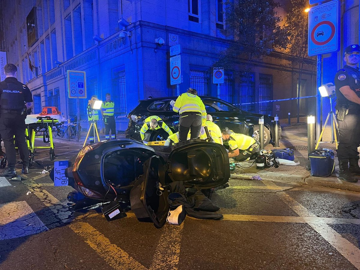 Un motorista de 32 años ha resultado gravemente herido este viernes de madrugada tras un accidente con un vehículo VTC en el cruce entre el Paseo del Prado con la calle Los Madrazo, según ha informado Emergencias Madrid.
