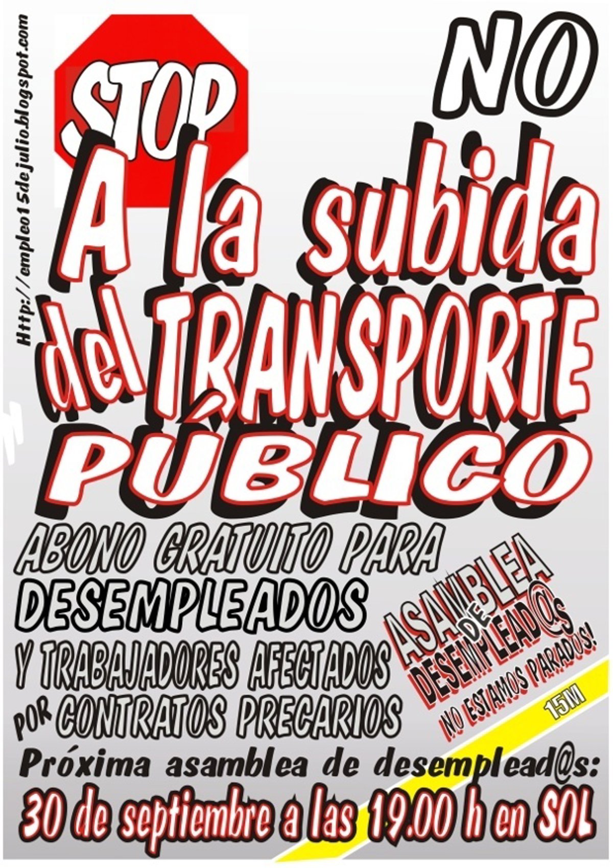 Por otro parte, el Grupo de Trabajo de Acción de la Asamblea de Desempleados y Desempleadas de la Acampada Sol Comunidad de Madrid ha convocado al martes a las 12 horas una concentración que tendrá lugar frente al Consorcio Regional de Transportes de Madrid, situado en la Plaza Descubridor Diego de Ordás, "para expresar el rechazo al aumento del coste del transporte público y exigir que el mismo sea gratuito para los trabajadores desempleados y precarios".