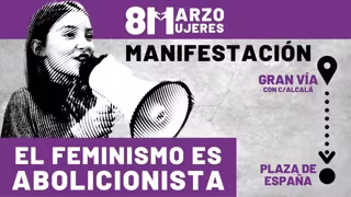 Por su parte, el Movimiento Feminista de Madrid espera reunir a 3.000 personas a partir de las 19 horas entre la calle Alcalá esquina con Gran Vía y la Plaza de España. La manifestación ha sido convocada por Espacio Feminista radical y el lema de la convocatoria es 'El Feminismo es abolicionista'. "No te equivoques de pancarta", avisan estas convocantes en sus llamadas a participar, para que su gente no vaya a la marcha de la Comisión 8M.