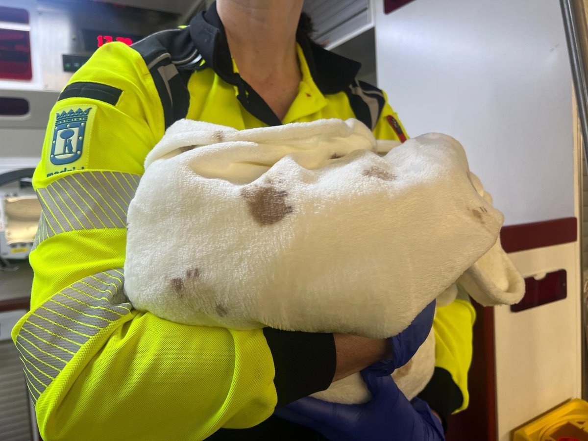 El equipo del Samur realizó en el lugar los primeros cuidados, hicieron el piel con piel, arroparon al bebé y sin cortar el cordón umbilical trasladaron a los dos en perfecto estado al hospital.