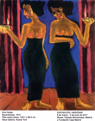 Siguiendo un orden temático, la muestra 'Heroínas' explora los escenarios y las diferentes vocaciones de las heroínas representadas por artistas como Caravaggio, Rubens, Rembrandt, Goya, Delacroix, Pissarro, Degas, Nolde; artistas vivas como Marina Abramovic, Kiki Smith, Mona Hatoum o Julia Fullerton y artistas de todos los tiempos como Mary Cassat, Lee Kassner o Nancy Spero.