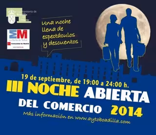 La III Noche Abierta lleva inscritos, por el momento, 74 participantes, un 5 por ciento más que el año anterior y casi un 20 por ciento más que la primera edición, según la organización. De esta forma, componen esta jornada un total de 66 comercios, 6 artesanos y 2 asociaciones (AMPAs de Boadilla y de Jazz) que pertenecen a "muy diversos sectores" (tiendas de moda, escuelas de música y danza, clínicas dentales, tiendas de animales, ópticas, estaurantes y tiendas de alimentación...).