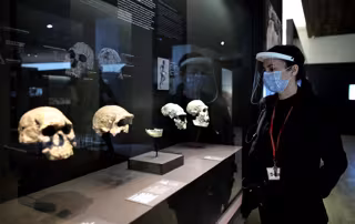 Una trabajadora con pantalla y mascarilla observa las obras disponibles en el Museo Arqueológico - Eduardo Parra - Europa Press