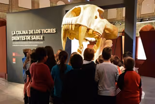 La exposición 'La Colina de los Tigres Dientes de Sable. Los yacimientos miocenos del Cerro de los Batallones (Torrejón de Velasco, Comunidad de Madrid)' supone la primera muestra monográfica sobre estos yacimientos, "uno de los conjuntos paleontológicos más importantes a nivel mundial".