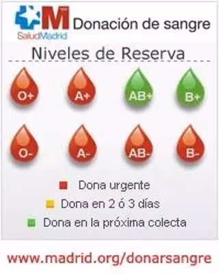 Mientras, los tipos AB+ y B- se hallan en niveles óptimos (nivel verde) mientras que en nivel amarillo no hay en estos momentos ningún tipo sanguíneo.