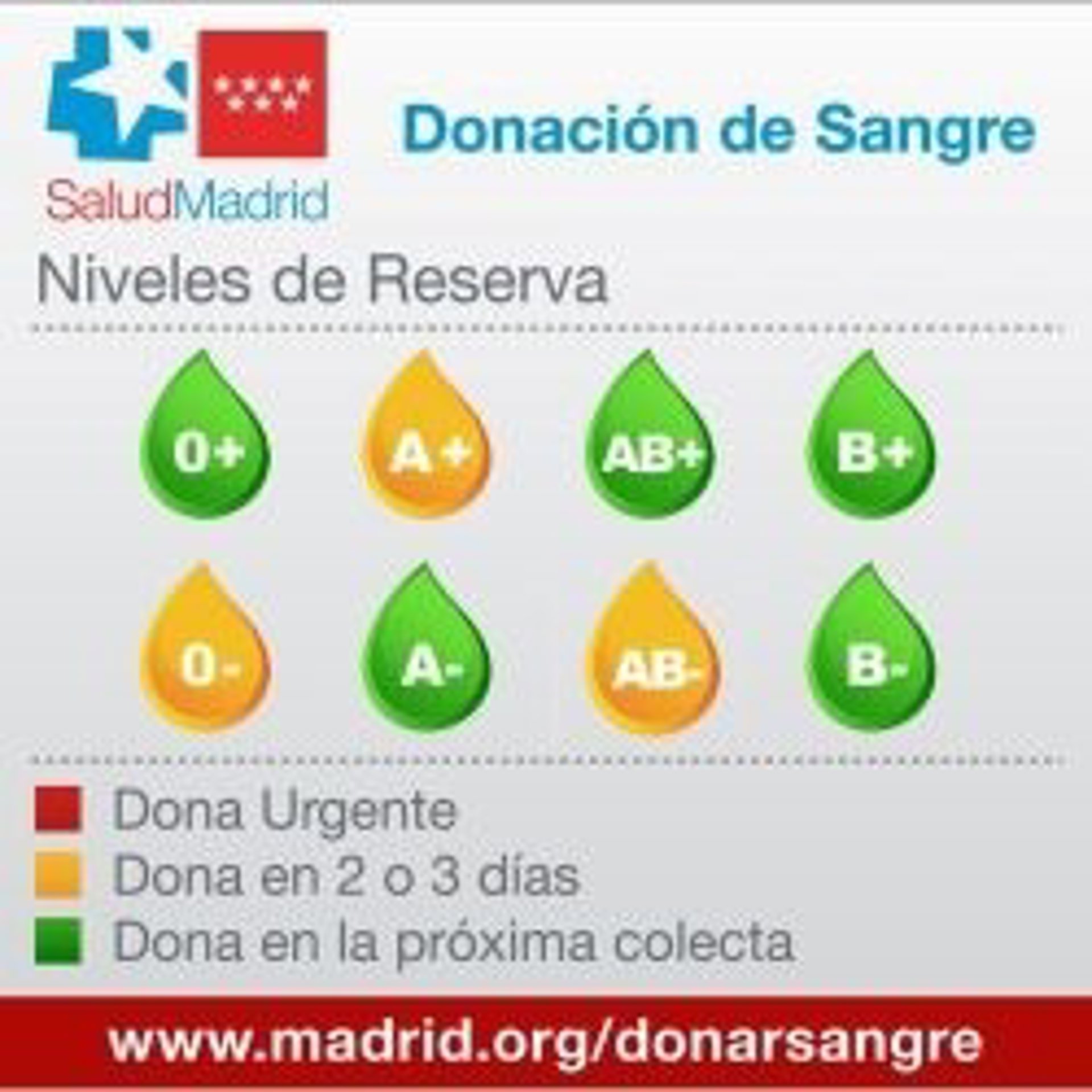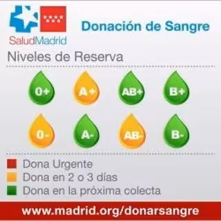 El Centro de Transfusión de Sangre de la Comunidad de Madrid ha requerido este lunes donaciones extra de tipo sanguíneo '0-', 'A+' y 'AB-' en la región, ya que las reservas se encuentran en alerta amarilla.