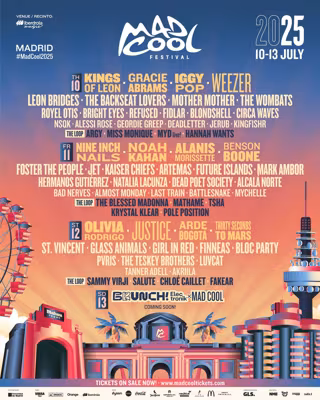 Esta edición de Mad Cool dará inicio el jueves 10 de julio con grandes nombres como Kings of Leon, Gracie Abrams, Iggy Pop y Weezer, entre otros. El viernes 11 de julio estará liderado por los ya mencionados Nine Inch Nails además de por Noah Kahan, Alanis Morissette y Benson Boone, mientras que el sábado 12 de julio serán Olivia Rodrigo, Justice, Arde Bogotá y Thirty Seconds to Mars los que encabezarán el line-up del festival.