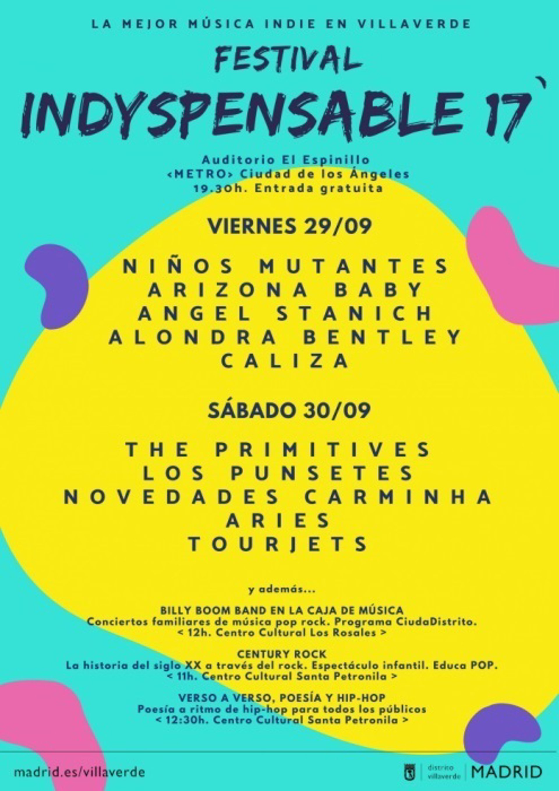 Organizado por la JMD Villaverde, el festival gratuito Indyspensable 2017 pretende convertirse en uno de los eventos musicales más interesantes de la ciudad. "Queremos que esas cosas que suelen pasar en el centro de la ciudad ocurran en nuestros barrios", ha afirmado Zapata.