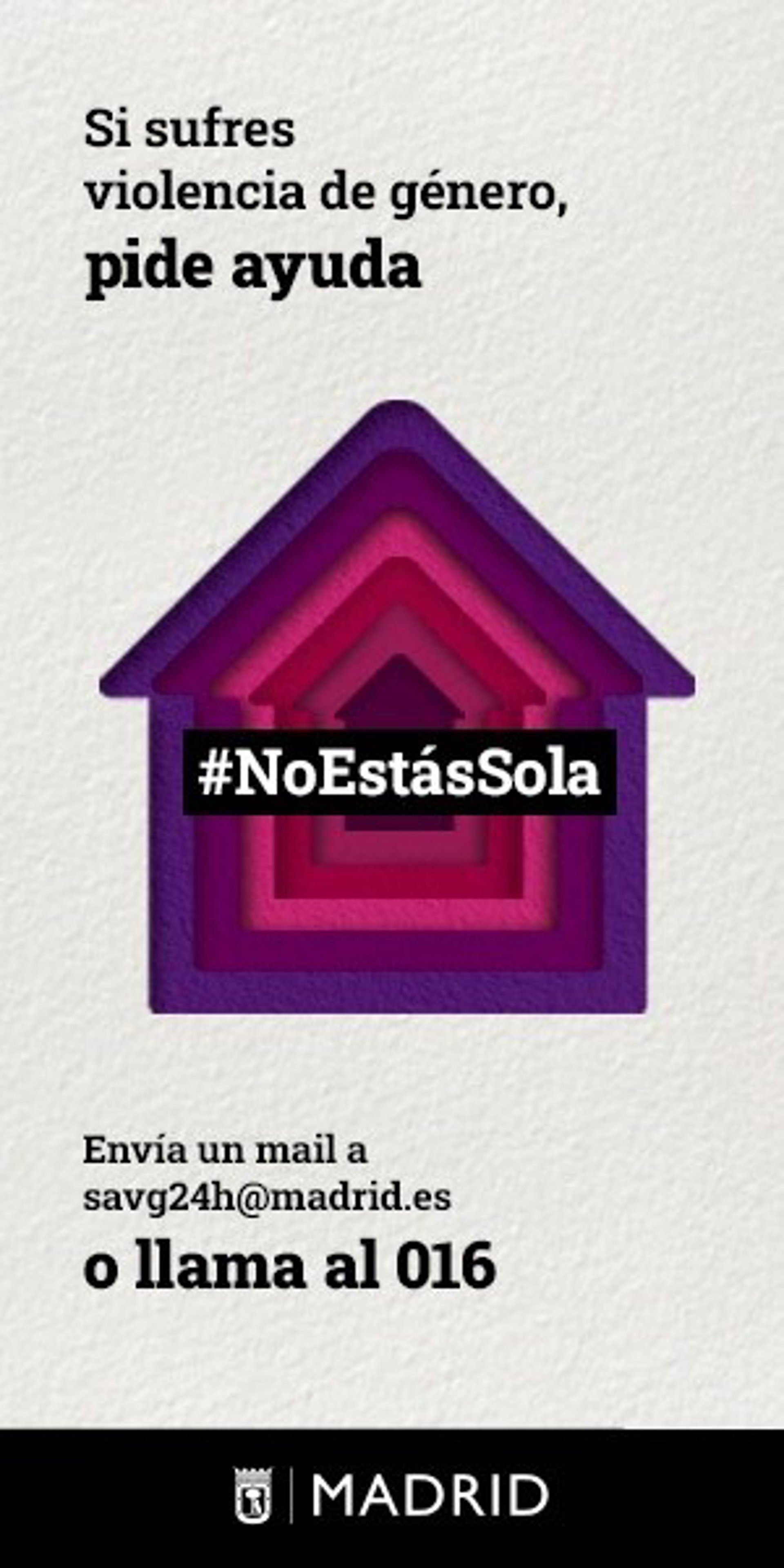 Según ha informado el Consistorio en un comunicado, la campaña pretende reforzar la presencia de los recursos para víctimas de violencia y recordar los datos de contacto a los que pueden recurrir las mujeres que la sufren, que son el '016' y '900 222 100' y la dirección de correo electrónico 'savg24h@madrid.es'.