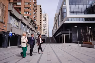 El alcalde de Madrid, José Luis Martínez-Almeida, en Nuevo AZCA; la delegada de Obras y Equipamientos, Paloma García Romero, y la concejala-presidenta de Tetuán, Paula Gómez Angulo - AYUNTAMIENTO DE MADRID