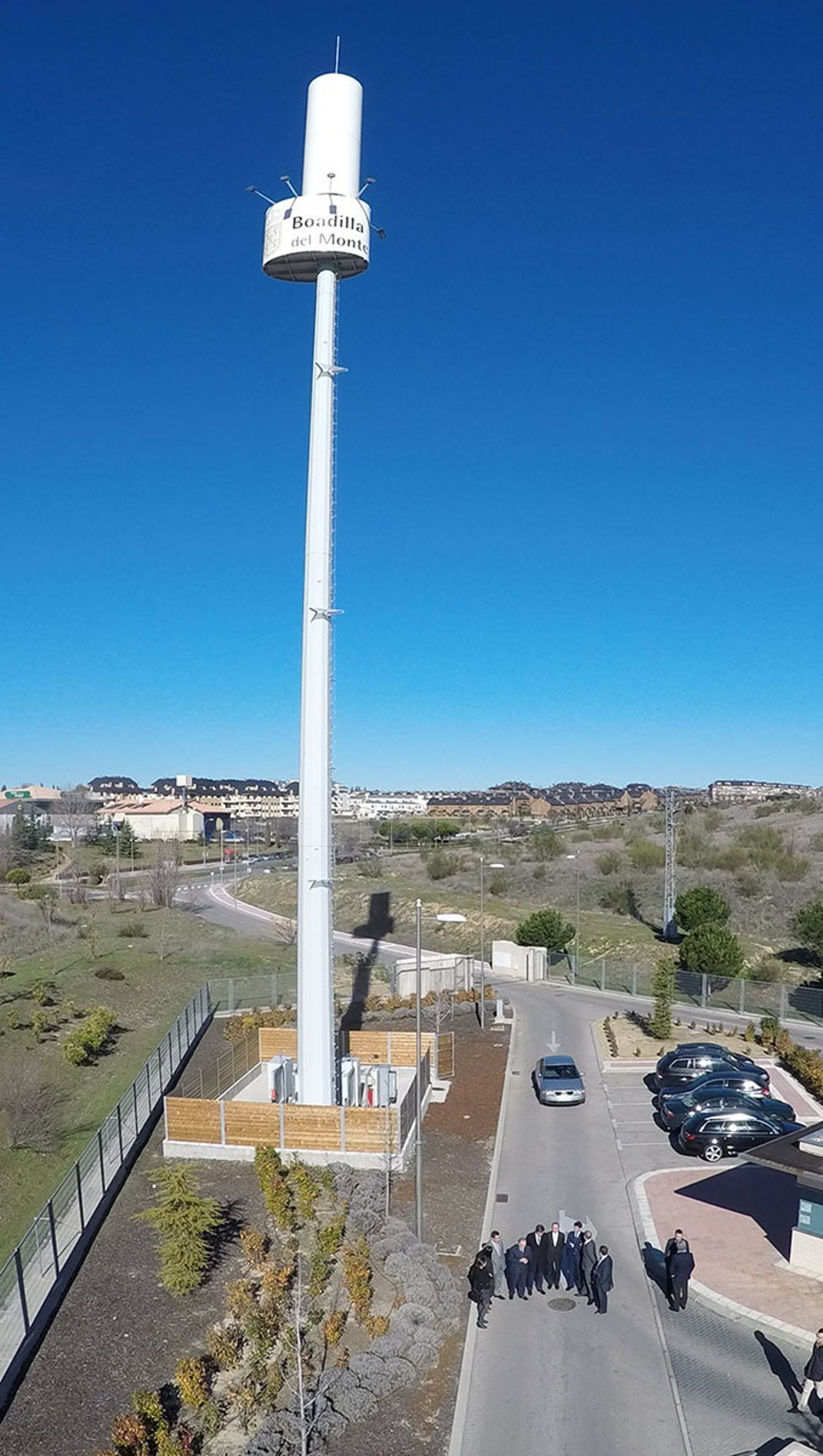 El alcalde de Boadilla, Antonio González Terol, el primer teniente de alcalde, Amador Sánchez, y representantes de Yoigo, Telefónica, Vodafone y Orange han visitado hoy la torre recién estrenada.