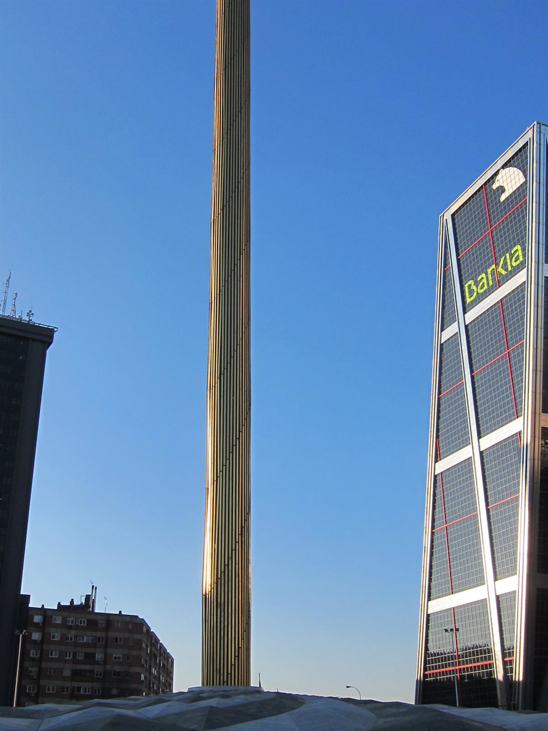El obelisco, que llegó a Plaza Castilla tras una donación en 2010 después de un protocolo de intenciones firmado entre el Ayuntamiento de Madrid y la Fundación Caja Madrid en 2004, cuenta con un mecanismo electrónico que genera un movimiento helicoidal que, a su vez, "requiere trabajos de mantenimiento diferente a los habituales en los monumentos (estáticos)".