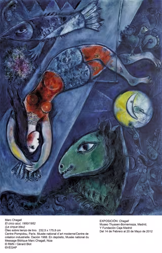 Marc Chagall (Vitebsk, 1887-Saint-Paul de Vence, 1985) desarrolló un estilo pictórico expresivo y colorista muy vinculado a sus experiencias vitales y a las tradiciones religiosas y populares de la comunidad judía rusa. En él combinó ciertos elementos de la vanguardia cubista, del fauvismo y del orfismo de Robert Delaunay para crear un estilo personal e inclasificable.