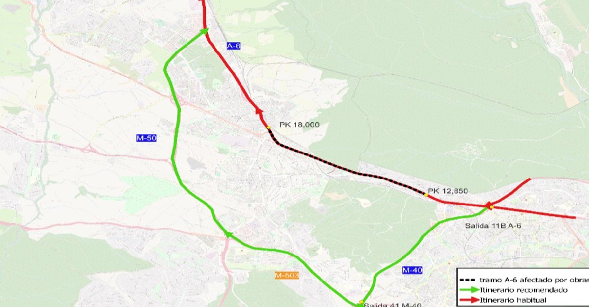 Todos aquellos que deseen evitar esta zona de obras, pueden optar por tomar alguno de estos itinerarios alternativos, como la A-6 sentido A Coruña hasta la salida 11B, donde se coge la autovía M-40 sentido decreciente (hacia A-5) hasta la salida 41, para tomar a continuación la M-503 y M-50 hacia la autovía A-6 sentido A