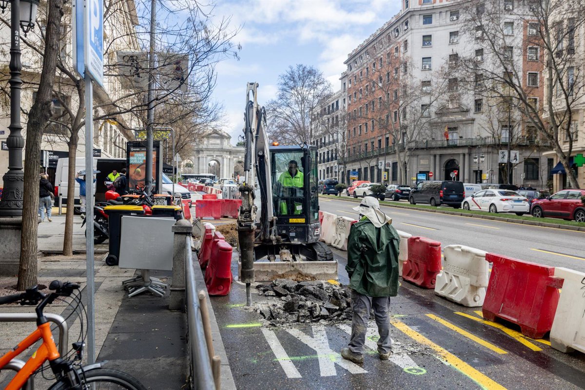 Archivo - Comienzo de las obras del bulevar en la calle Alcalá, a 3 de febrero de 2026, en Madrid (España). La nueva configuración de la calle permitirá a los ciudadanos transitar por el monumento, que recuperará en parte su condición de puerta de acceso - Ricardo Rubio - Europa Press - Archivo