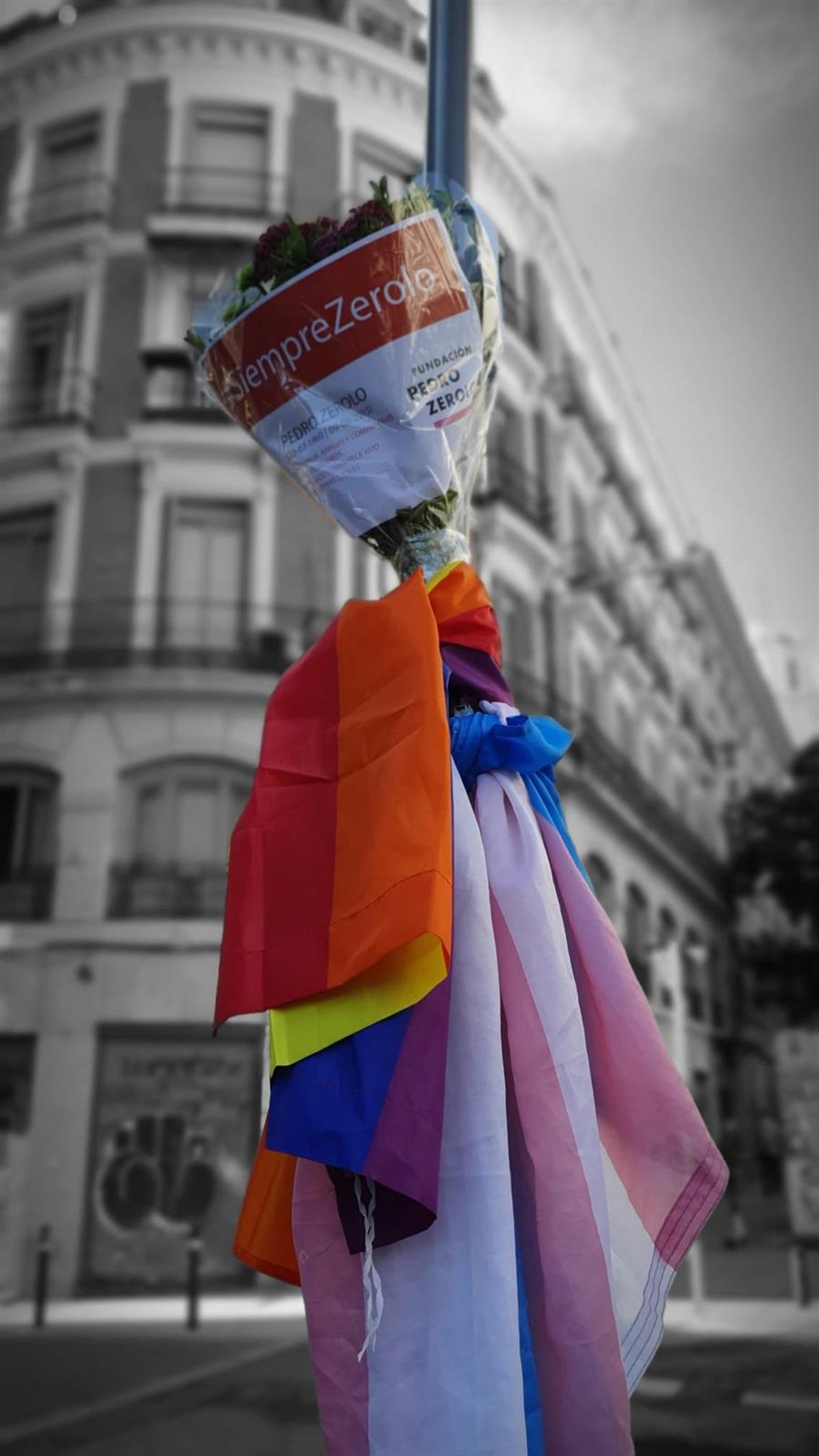 Una ofrenda floral con las banderas LGTBI y Trans recuerda el quinto aniversario del fallecimiento de Pedro Zerolo - FUNDACIÓN PEDRO ZEROLO