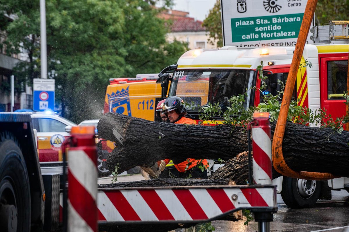 Bomberos desalojan el árbol que ha caído sobre un paso de peatones por la borrasca Ciarán, a 2 de noviembre de 2023 - Matias Chiofalo - Europa Press